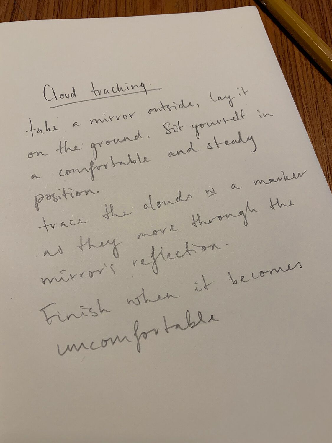 "For my residency I spent time doing different activities that felt appropriate for the space constraints and materials I had at home."