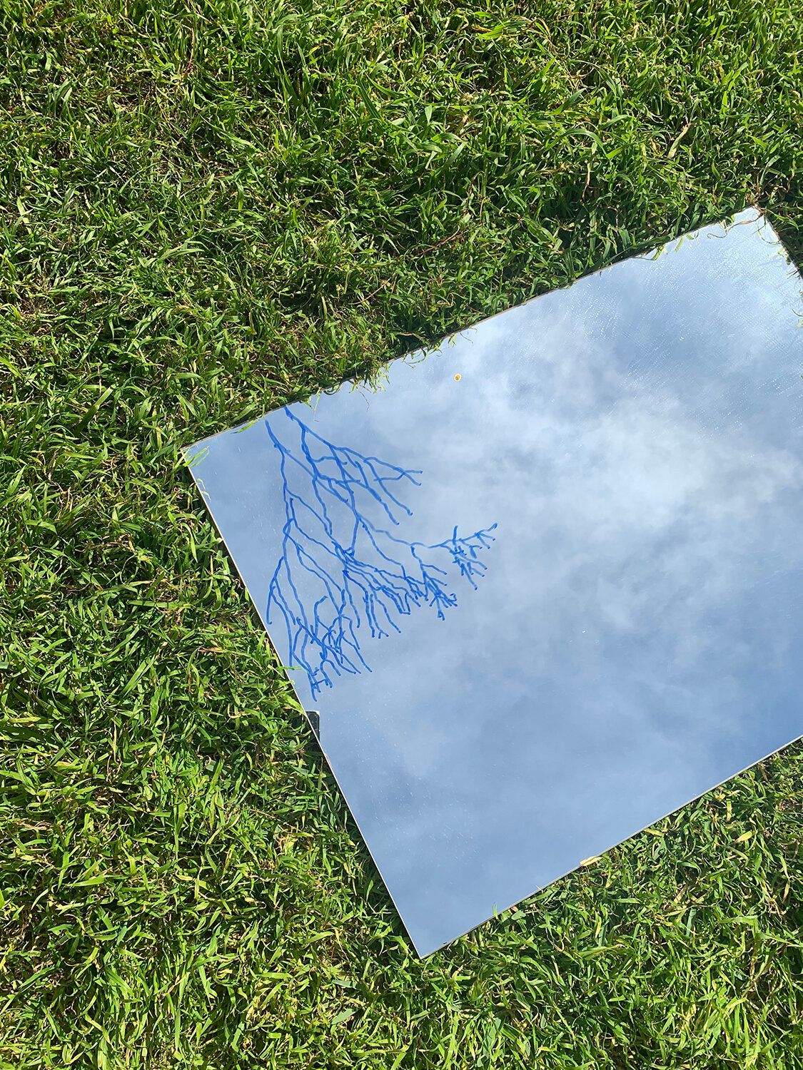 I would give myself a simple activity to follow, often involving the mirrors that I have collected for performances I have done. The activities involved tracing reflections of trees, or tracing the movements of clouds overhead, or moving my body to shift the sensation of warmth from reflected sunlight along different pathways on my body. I also spent time layering the documentation of some actions over other photos I had taken whilst walking through my neighbourhood.